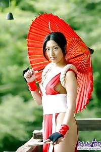 Breathtaking Asian tigress takes off her cat suit and flaunts her high class breasts